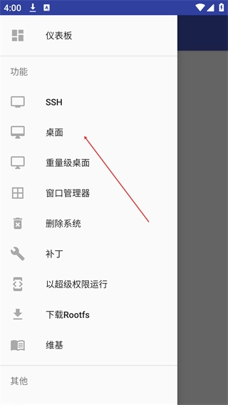 打开AnLinux应用后,点击界面左上角的菜单按钮,这样就能展开功能列表了。