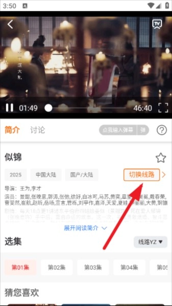 要是播放界面出现卡顿,你可以点击底部的线路切换按钮,调整一下线路和清晰度。