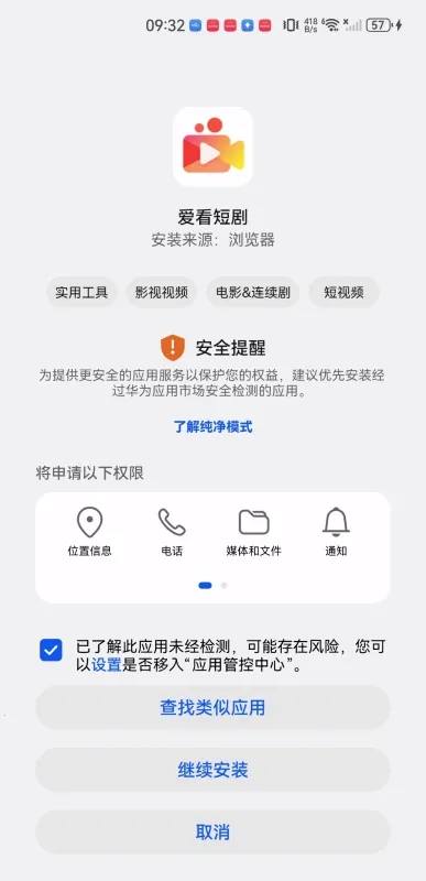 第三步,勾选“已了解此应用未经检测……”这个选项,接着点击“继续安装”按钮。(遇到安全提醒时无需担心)
