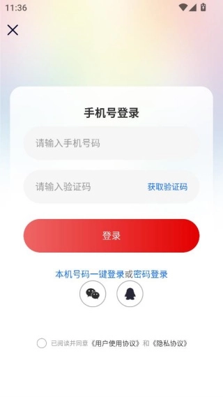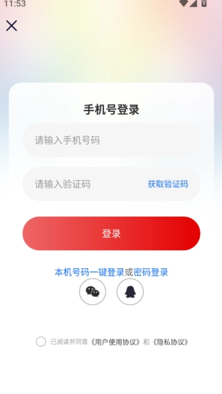 打开该软件后,进入登录界面,输入您的手机号码与验证码就能完成登录操作。