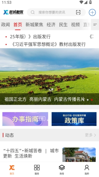 进入主界面后,就能使用首页、新城聚焦、经济、民生、视频等服务板块了。