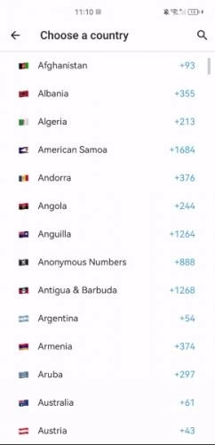 2、向下滑动找到租车电话号码对应的归属国家,选中并确认。