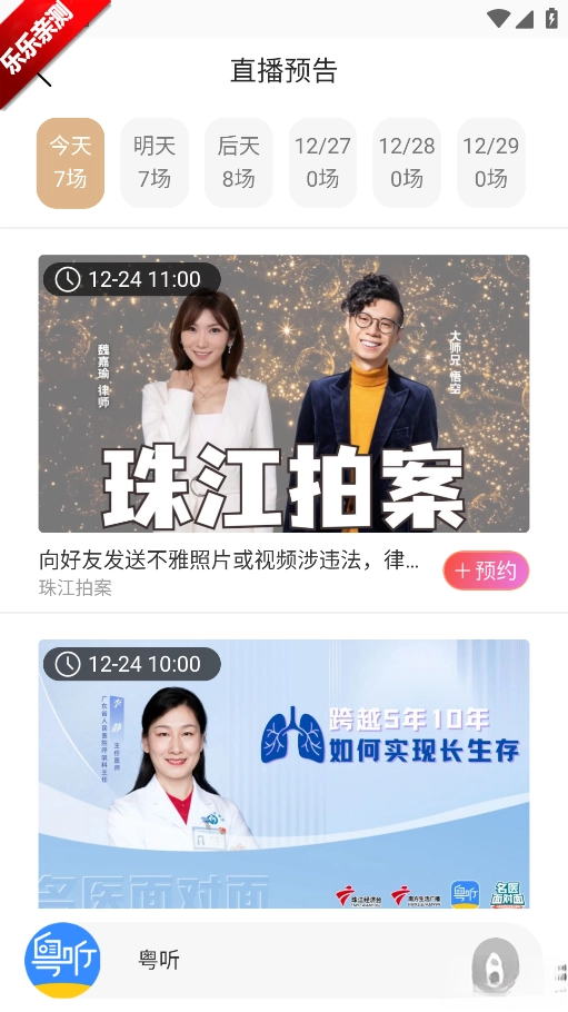 粤听怎么预约直播?