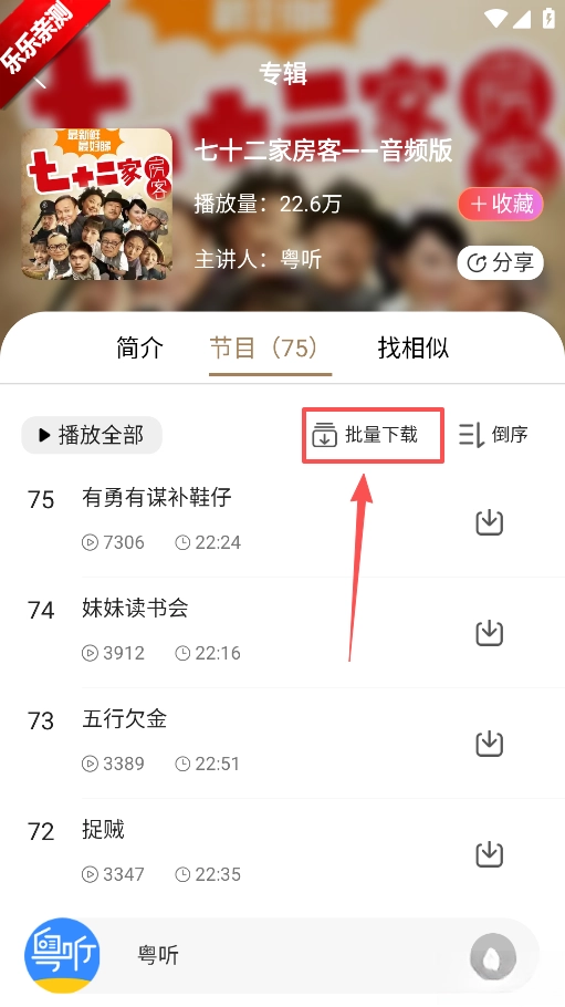 在节目详情页中,你可以点击“批量”功能键