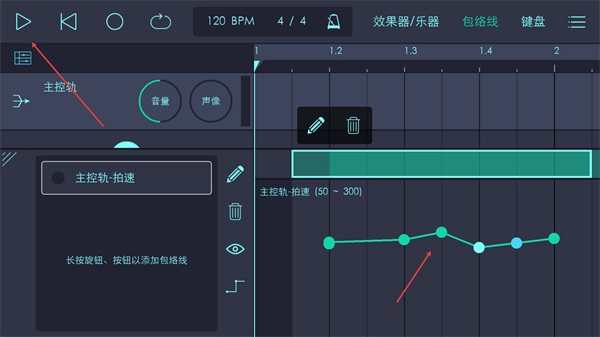 在包络线编辑区域,拖动节点能够调整包络线的曲线形状。