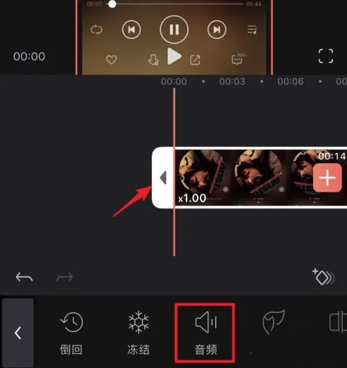 点击后选中视频,接着在下方的选项栏中向左滑动,找到并点击音频图标进入即可。