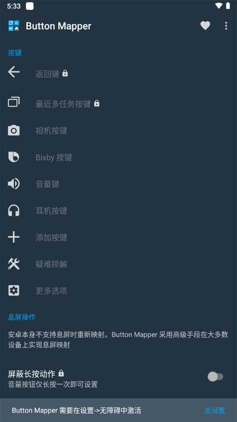 Button Mer软件能让你的手机使用更便捷、更稳定。在软件里,你可以轻松通过自定义操作,对各种按键及其他硬件按键进行点击设置,重新创建不同的应用程序,保障使用安全。无论是单机还是长按方式,都能选择不同模式,制作出多样的映射内容,完成各类布置,快来重新进行按钮映射吧。