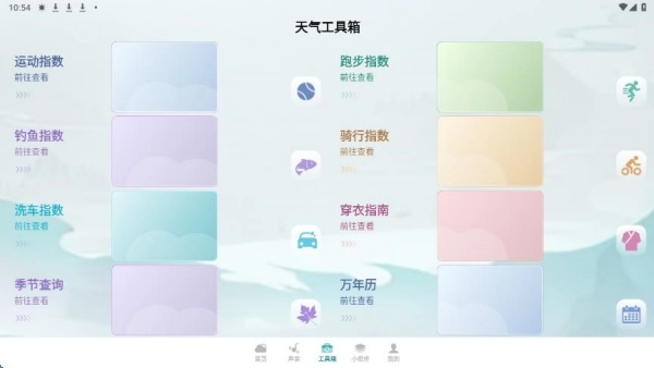 在工具箱页面查看,大家能看到运动、钓鱼、跑步等指数信息。