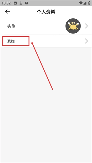 进入【个人资料】页面后,找到【昵称】这一选项,点击它就能对账号昵称进行修改。