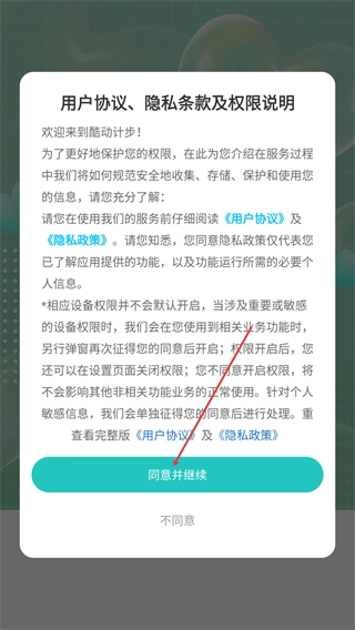 在阅读完【用户协议】与【隐私政策】后,点击【同意并继续】按钮即可进入应用。
