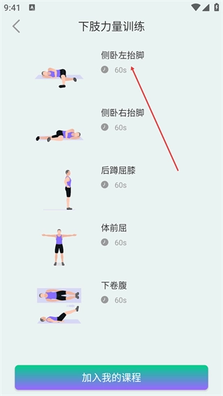 在首页点击课程计划里的训练条目,就能进入该训练对应的动作列表页面。