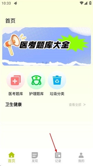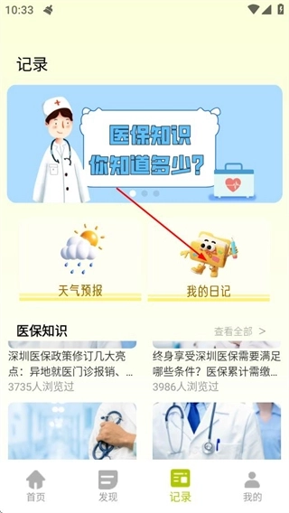 进入医指通后,点击底部的记录选项,就能进入记录页面。