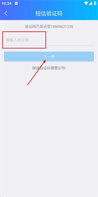 在账号注册页面输入手机号码,接着点击下一步按钮来获取验证码。