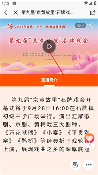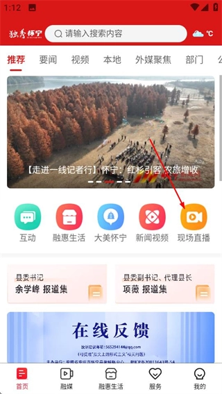 在独秀怀宁首页点击现场直播选项,即可进入现场直播页面。