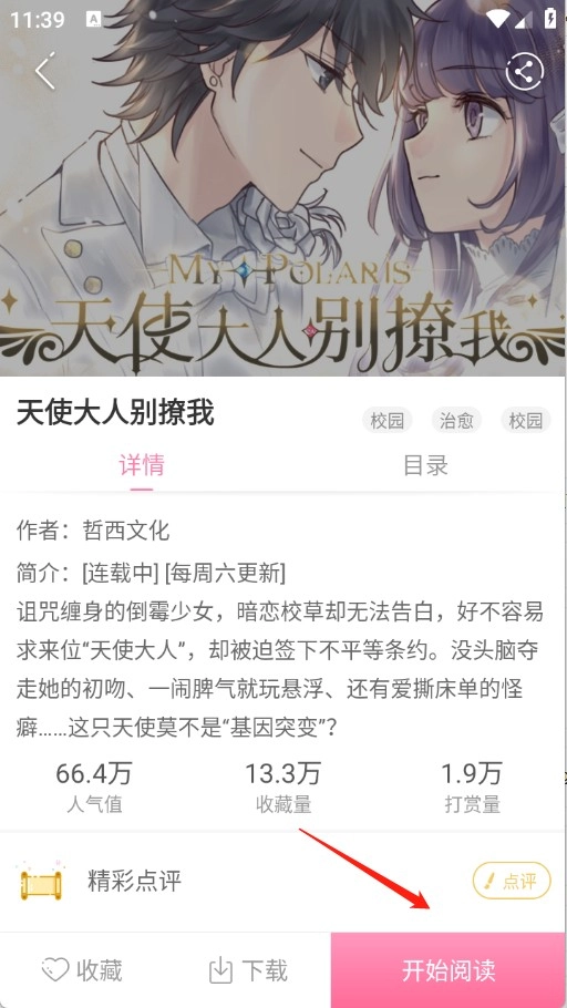 3、选择一本漫画进入详情页,然后点击底部的“开始阅读”选项。