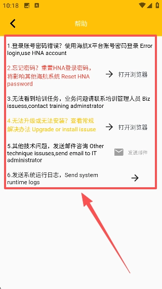 进入【帮助】页面,能够查看涵盖账号登录、密码重置、培训业务等问题的解决办法,部分问题还支持跳转至浏览器或进行发送邮件的操作。