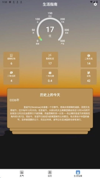 在生活指南页面,同步展示了丰富的穿衣等建议。