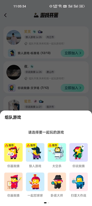参与游戏对局:体验扫雷大作战、狼人游戏、你画我猜等趣味游戏,每局结束后都能收获相应的金币奖励。狼人游戏更设有日常福利机制,完成指定游戏任务还可额外领取金币收益。