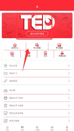 打开TED英语演讲,点击“我的”,在该界面找到“会员中心”,点击进入。