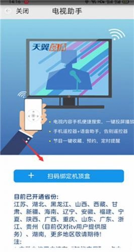 2、点击添加设备,选择智能机顶盒,通过扫码完成机顶盒的绑定操作。