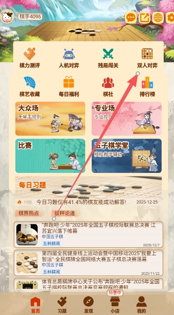 点击首页的双人对弈界面,即可开启与好友玩家的对局。