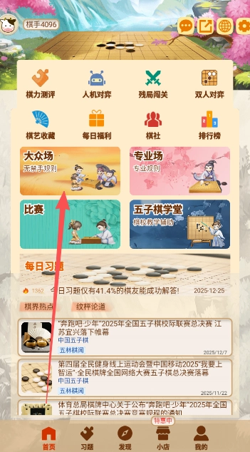 创新玩法矩阵:四人场支持组队协作对战,财富场把棋艺与收益巧妙融合,妙手解谜带来智力挑战,自创比赛则能满足个性化需求。