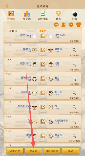 点击首页大众场,进入游戏对弈界面。