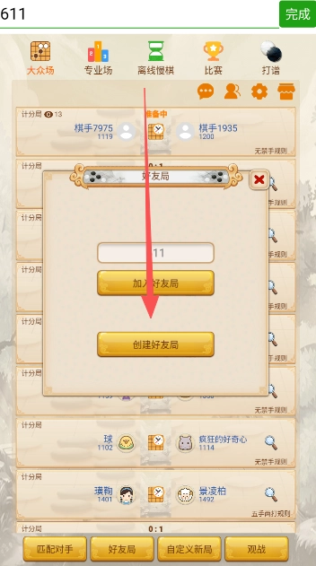 点击下方好友局游戏界面创建。