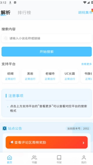 在软件首页顶部的解析框里输入你想搜索的文章或链接。