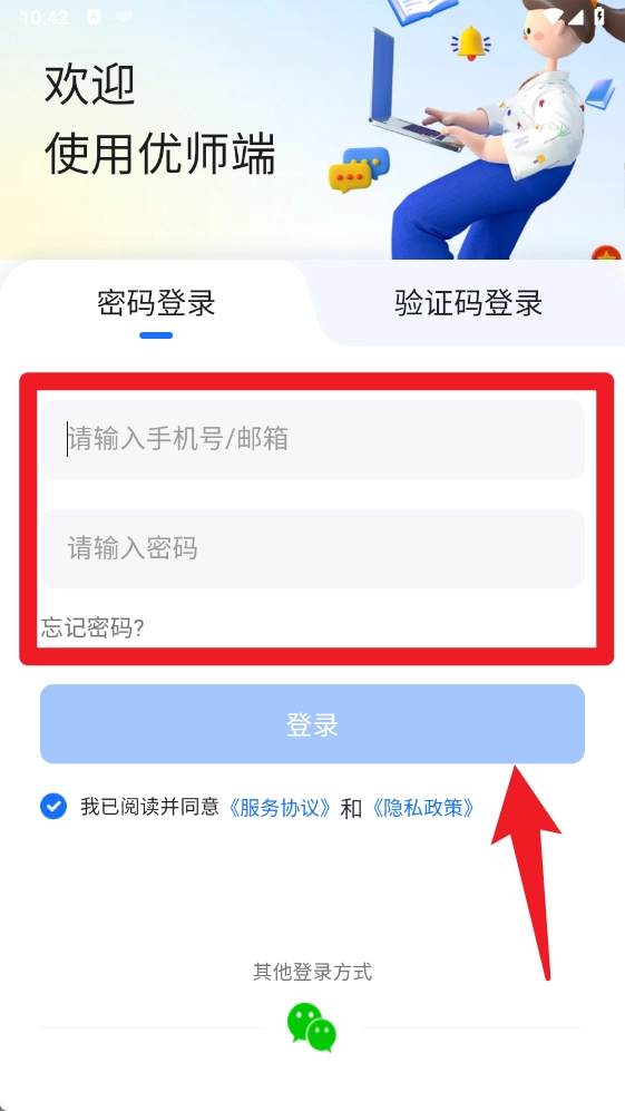 1、在登录界面,教师能够输入手机号或邮箱,并搭配密码完成账号密码登录操作,以此确保教学数据的安全性和访问的便捷性。