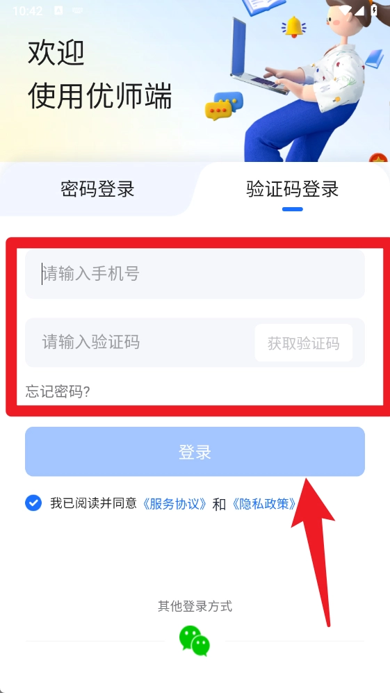 2、要是忘记了密码,还能切换到验证码登录方式,仅需输入手机号并获取验证码,就能快速完成登录步骤。
