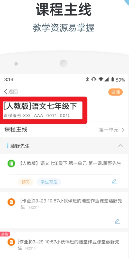 3、在课程主线页面,教师可以查看详细的课程安排与任务内容,从而清晰掌握各年级的课程资源及学习进度。