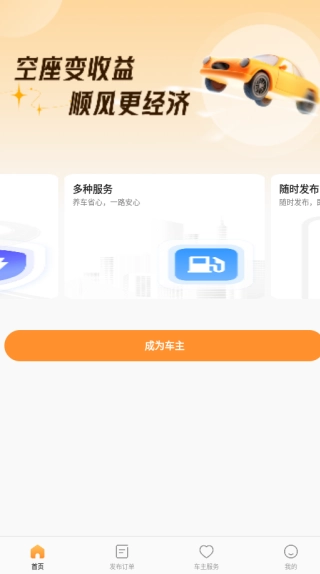 2、进入首页,用户可以直接点击“成为车主”按钮。