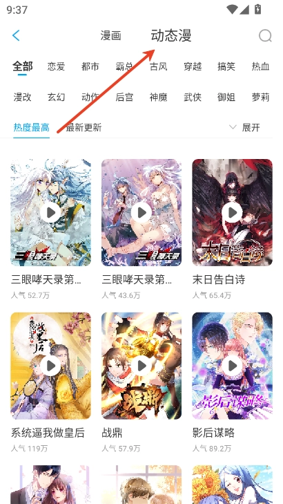2.点击上方【动态漫】还可阅读最新动态漫画资源。