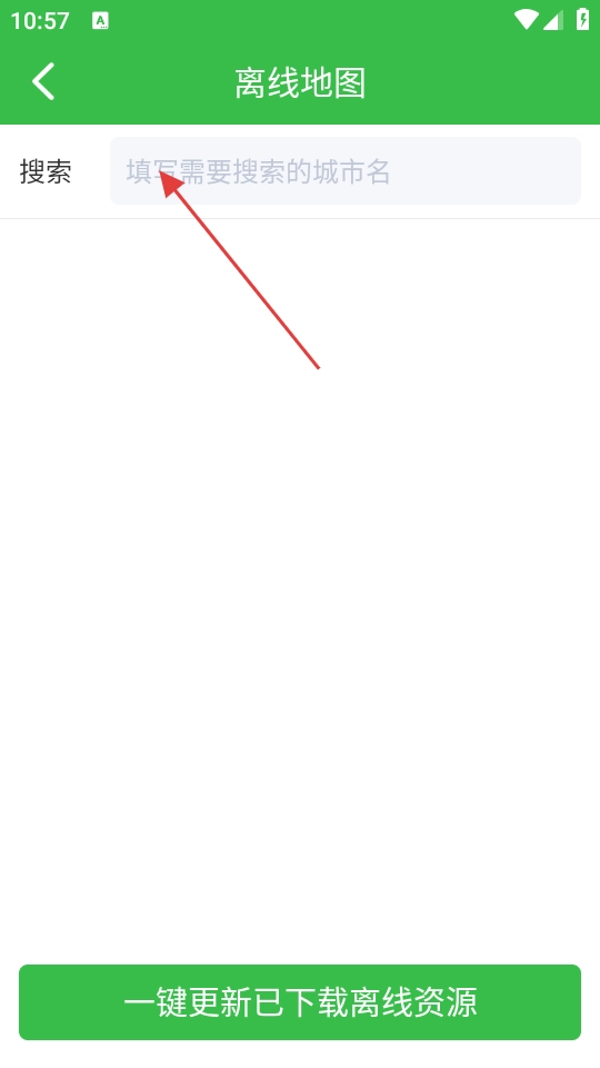 3、进入离线地图页面后,点击搜索框,输入想要查找的城市名称(例如“上海”)。