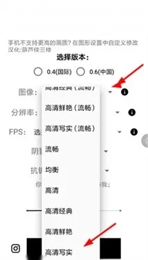 多档画质帧率深度定制,可自由选画质档位、调分辨率与帧数上限,还能开关隐藏选项。