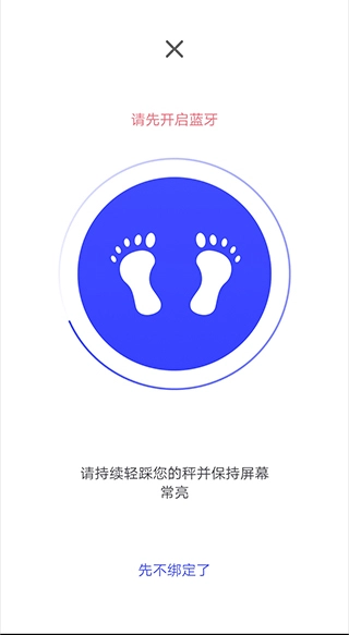 3、在新打开的页面里,根据提示开启手机蓝牙,同时持续轻踩体重秤,并保持手机屏幕常亮,稍作等待就能完成连接。