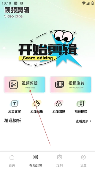 进入首页后,点击底部的【视频剪辑】选项,即可进入视频编辑的功能界面。