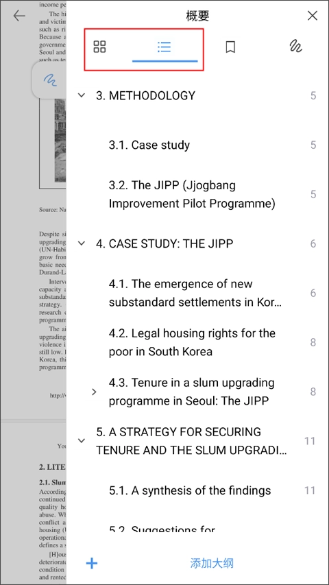 也可以点击右上角的页面导航按钮将其调出,在大纲上进行翻页操作。