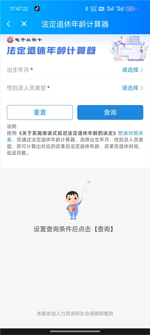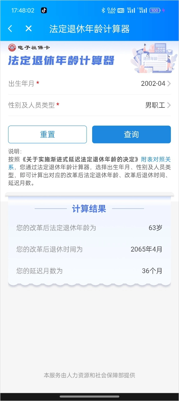 点击查询后,即可看到你的法定退休退休年龄结果。