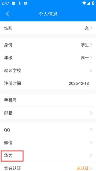 进入个人信息页面后,找到【华为】选项并点击。