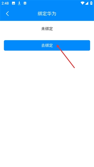 进入绑定华为的页面后,若看到当前状态显示为【未绑定】,只需找到并点击【去绑定】按钮,就能继续进行华为账号的绑定流程了。