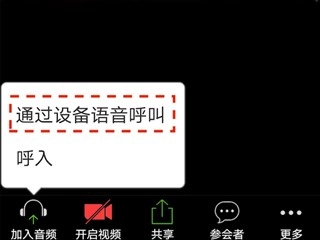 5、进入会议室后如果听不到声音,可点击「加入音频」,接着选择「通过设备语音呼叫」或者「通过蜂窝和wifi呼叫」
