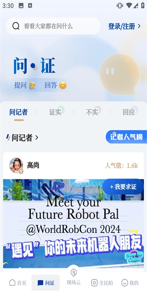 2、点击左下角的“问证”,在这里能够查看其他用户发布的新闻内容。
