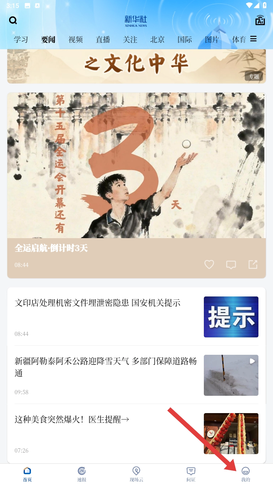 1、我们打开【新华社】APP,点击底部的【我的】选项,就能进入个人界面了。