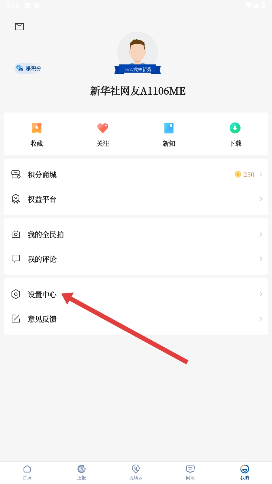 在【我的】界面中,点击【设置中心】,即可进入【新华社】的设置页面。