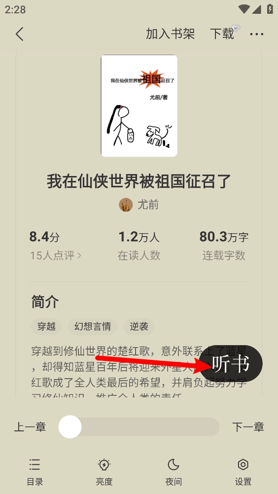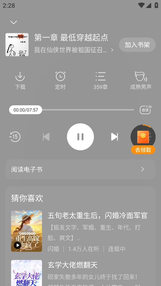 如图,即可开启听书体验。