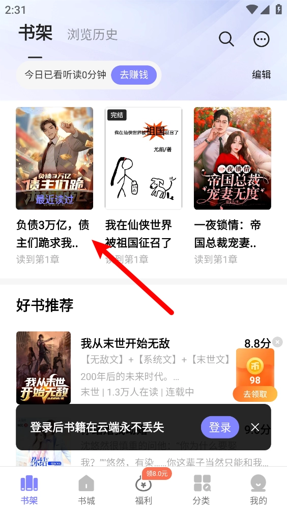 正在看的书籍书城突然找不到了
