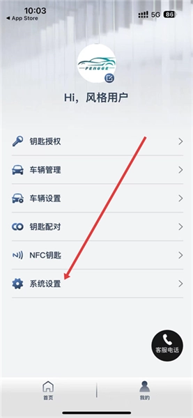 在我的页面能看到钥匙授权、车辆管理等功能,点击系统设置即可进入系统设置页面。