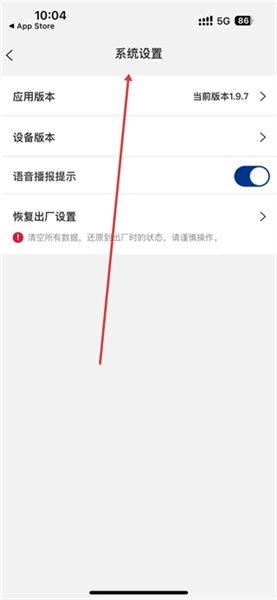 在系统设置页面,你可以查看应用版本、设备版本等相关信息,同时也能进行语音播报提示的设置以及恢复出厂设置的操作。
